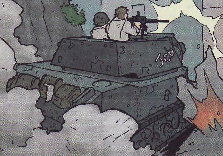 Jeb was the name of a small tank used by Lt. Everett and his men to subdue most of the Laufpanzers, with Robo's help. It found its purpose when Robo did a surprise attack and rammed the vehicle into a Laufpanzer and quickly capturing the rider. He devised the plan with Everett and his men, and so with the help of the tank, they were able to destroy five more in one day.