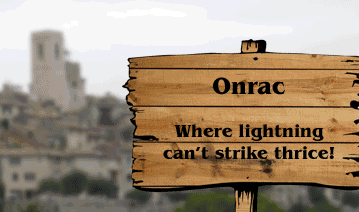 Onrac is one of the many towns in the world of Final Fantasy, but is apparently a prop for demolition in 8-Bit Theater. Appearing in Episode 1137, Black Mage's dark energy-channeled Hadoken annihilated the town, making Thief's quip rather ironic.