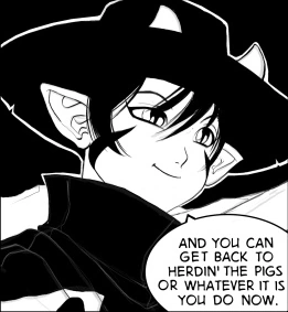 | Kit | (Smiling) And you can get back to herdin' the pigs or whatever it is you do now. |