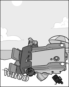 | X-017 arrives at the beach and attempts to lay down. In doing so, he slams into the ground and instantly becomes buried in the sand. He is ignored for much of the day, save for one seagull, which defecates upon him. Near sundown, a construction crew lifts X-017 out. |